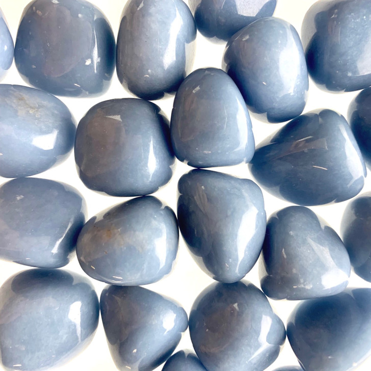 PEACE LOVE CRYSTALS has a beautiful selection of natural Angelite Tumbled Stones.